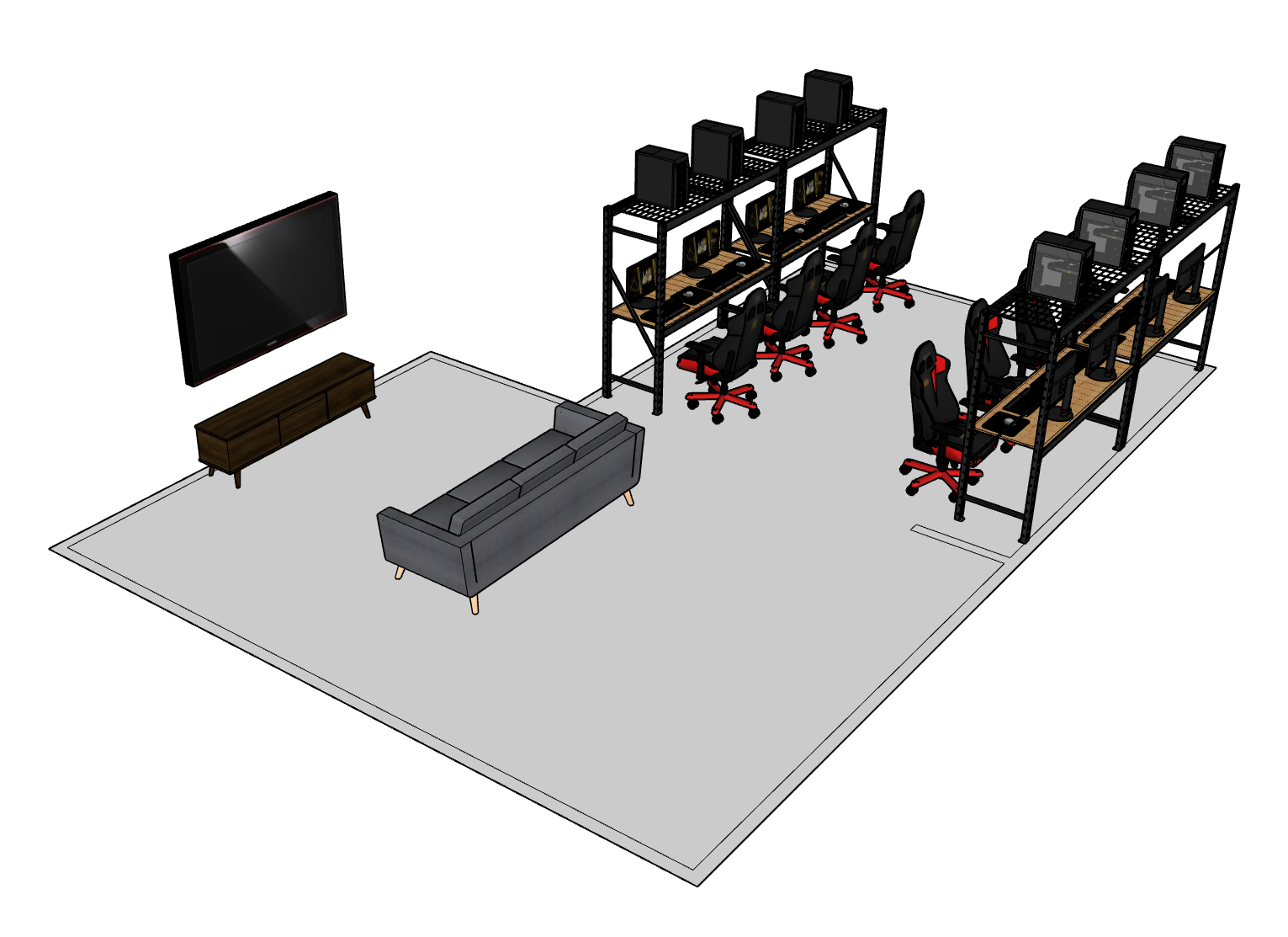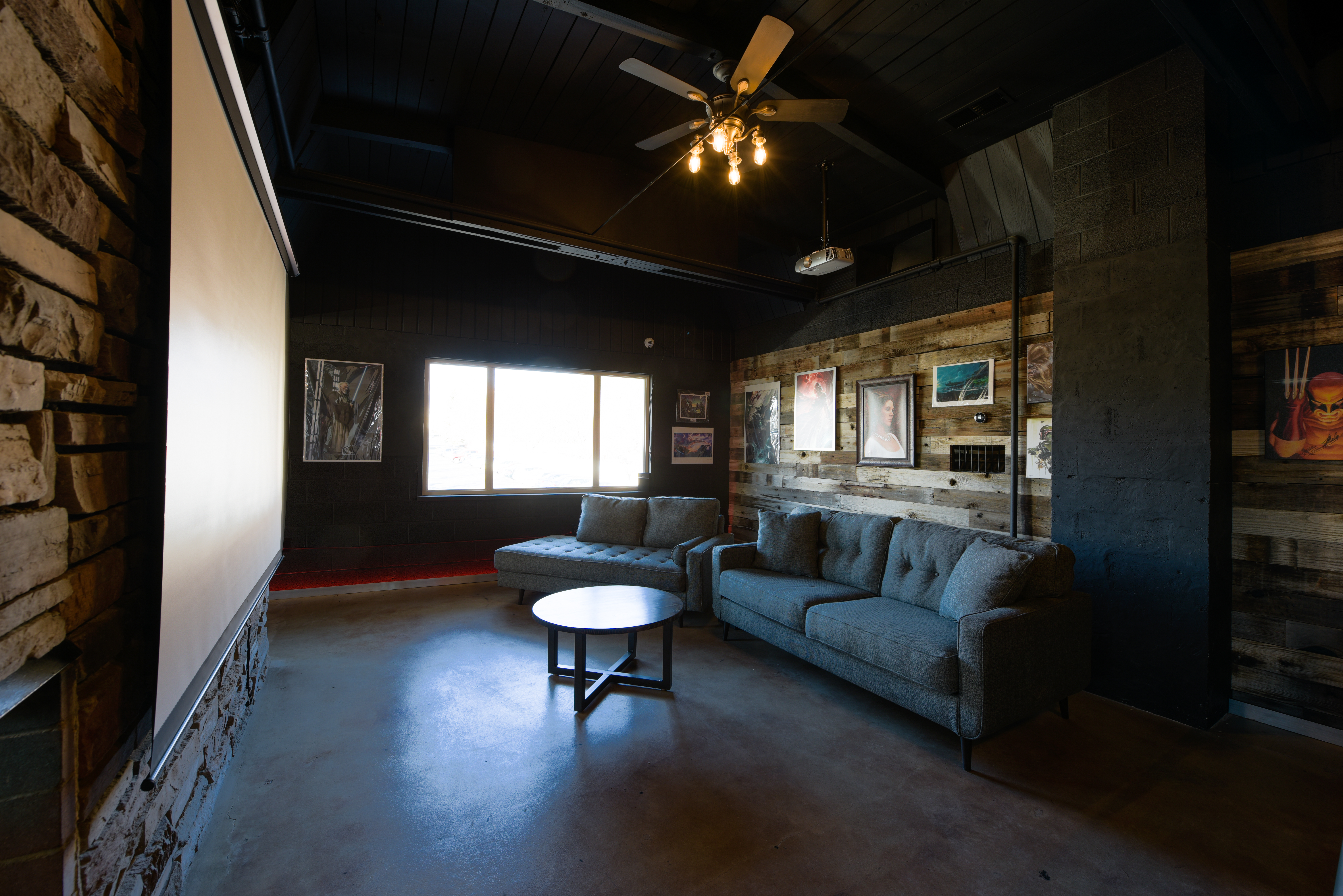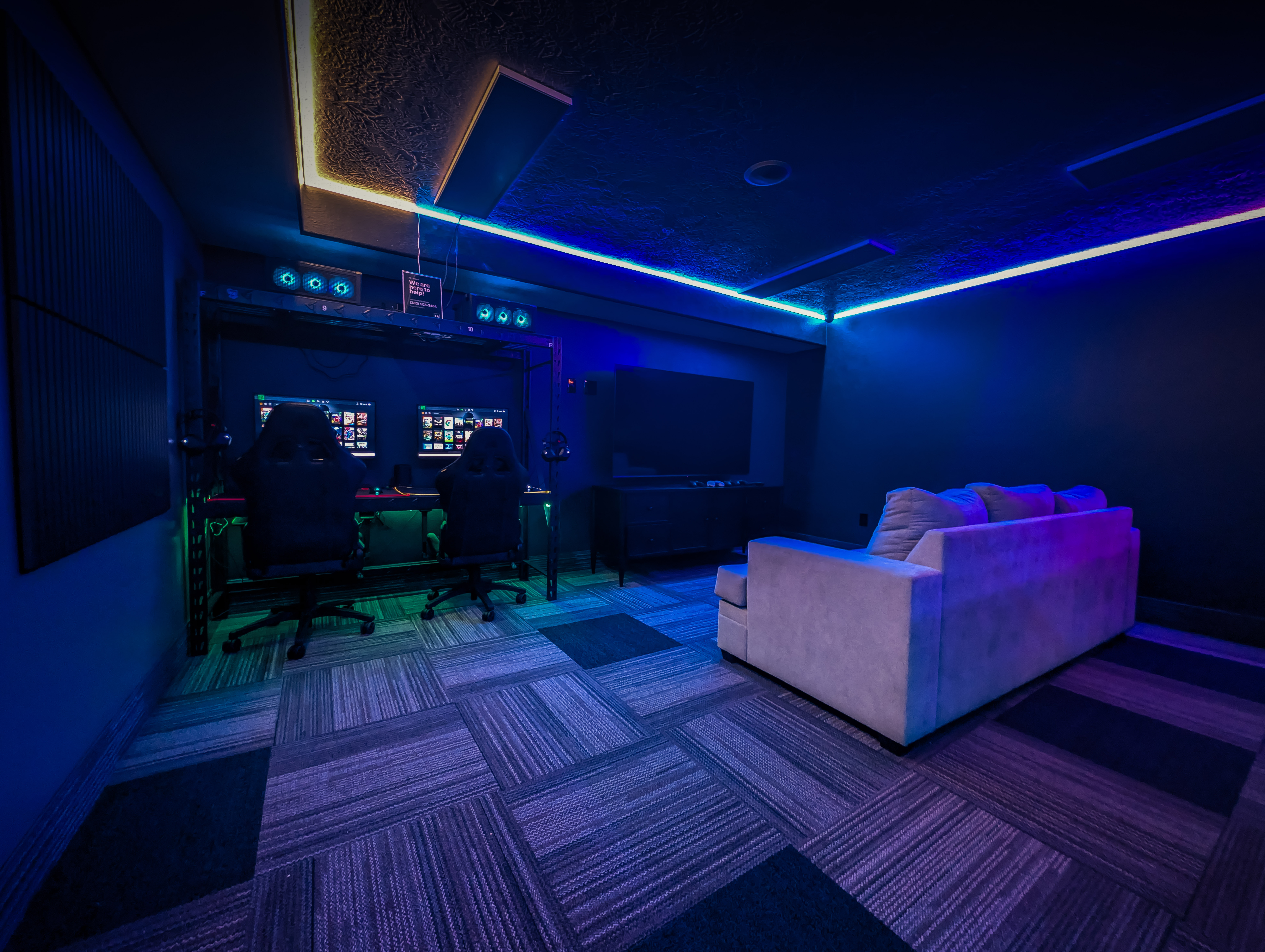Comfortable couches and chairs designed for group play and spectating